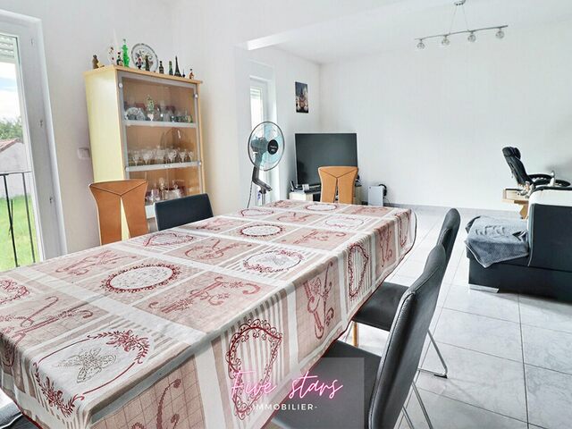 - cuisine semi ouverte sur une grande pièce de vie lumineuse salon/Salle à manger. Une porte fenêtre avec escalier donne sur l'arrière de la maison et le jardin. Un wc séparé, 3 chambres et une salle de bain avec baignoire.