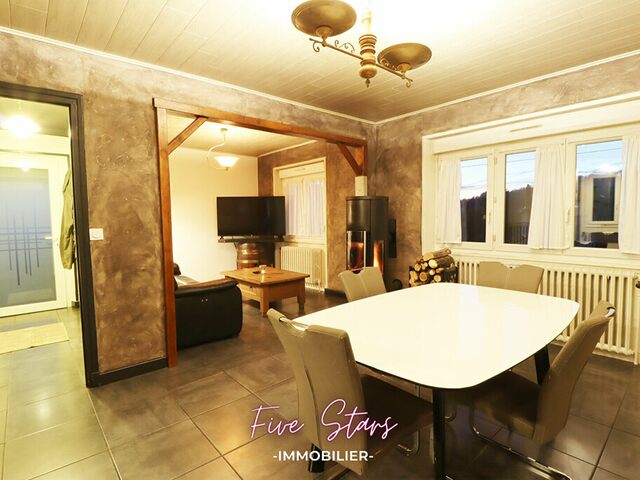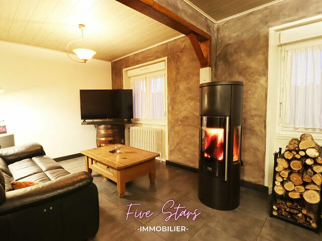 - niveau habitation: un salon et une salle à manger (27m2) agrémenté de son poêle à bois, une cuisine équipée, une buanderie et 3 chambres.