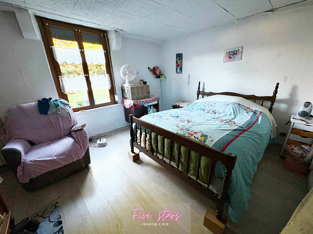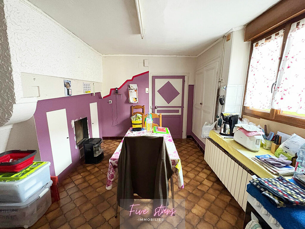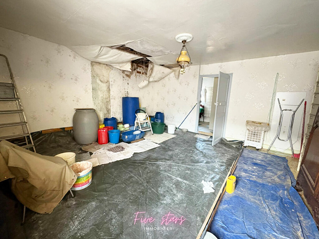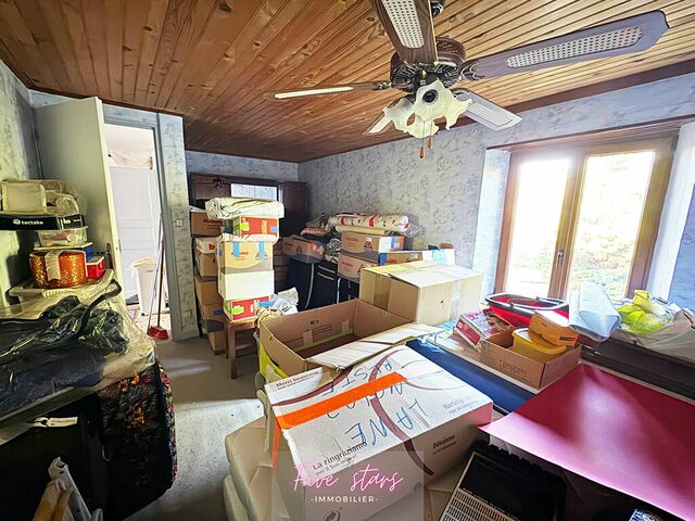 Technique : Menuiserie PVC bois double vitrage (Volets roulants manuels), chauffage central granulé + foyer bois. Travaux à prévoir (toiture, électricité, revêtements)