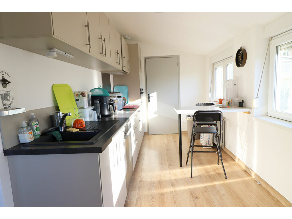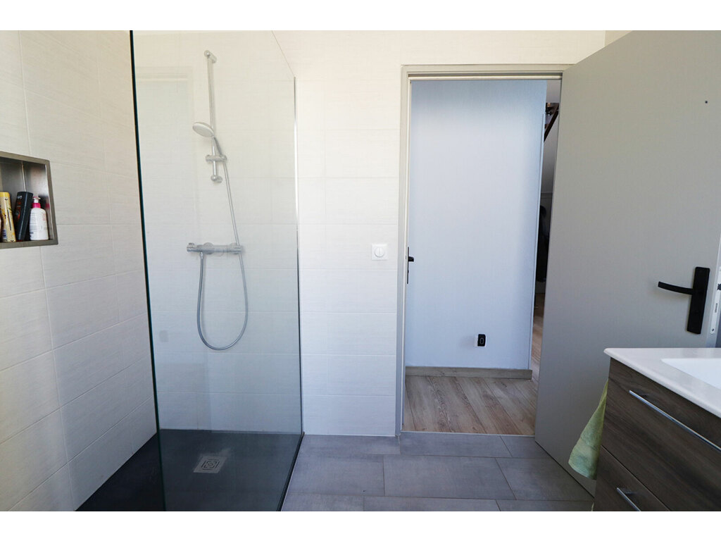 - Rdc: un salon, une salle à manger ouverte sur une grande cuisine équipée très lumineuse, une buanderie et u,e petite véranda sur l'arrière, une salle de douche et un wc.