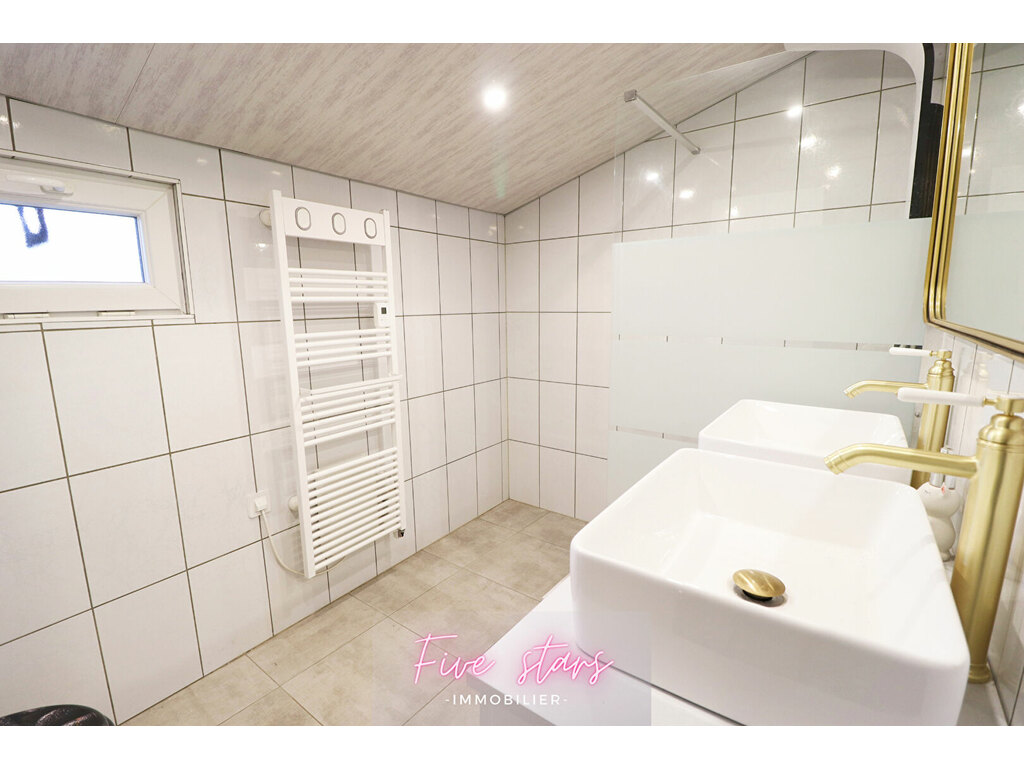 - Une salle de bain disposant d'une douche, double-vasque, chauffe-serviette, WC (7,16 m2)